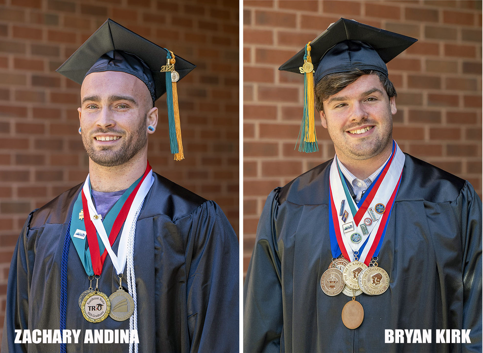 Students-now-alumni Zachary Andina and Bryan Kirk were two of 100 recipients selected to receive the transfer scholarship from a pool of nearly 1,200 applicants representing 332 community colleges nationwide. They were selected based on academic achievement, unmet financial need, persistence, and leadership.